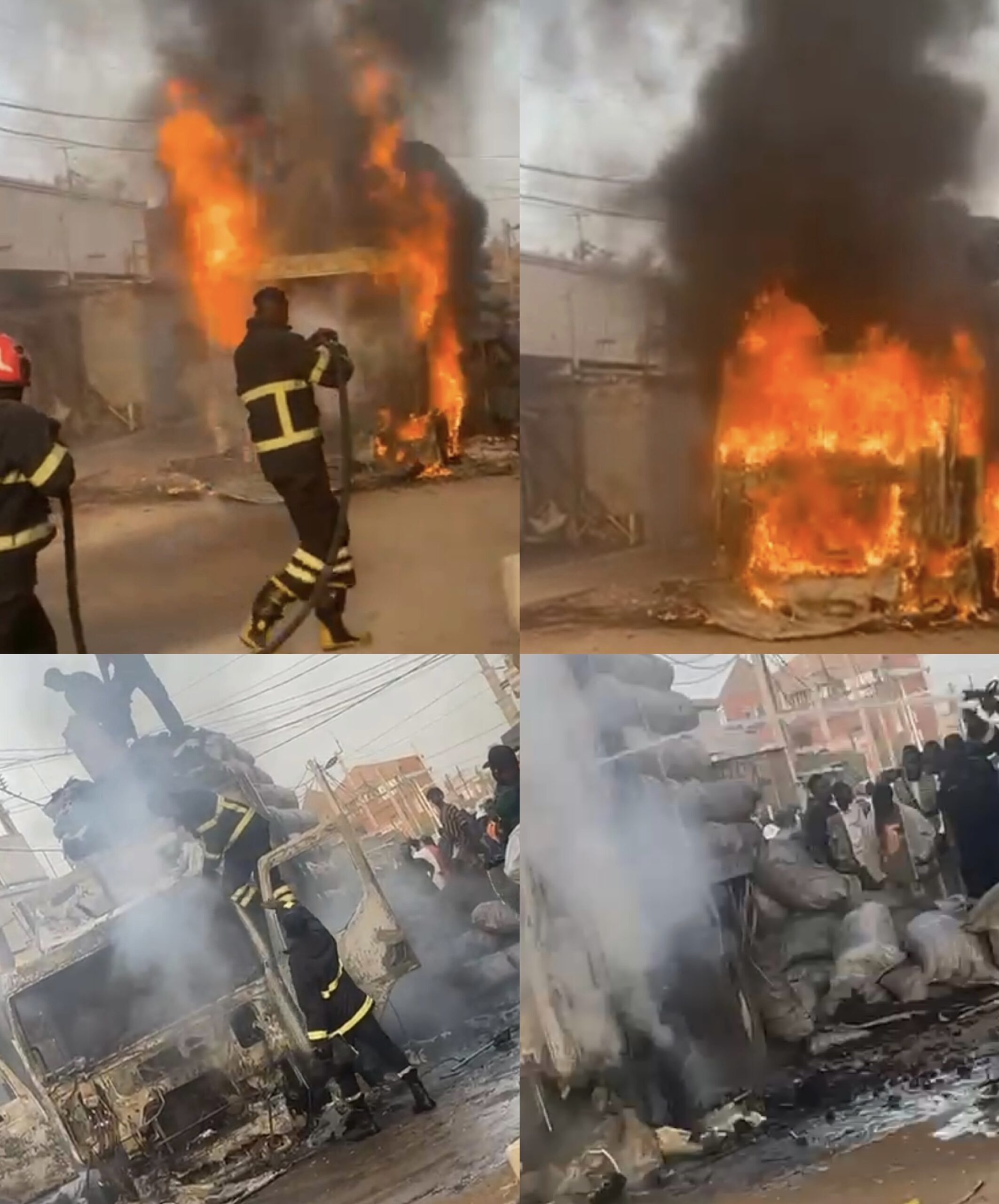 Kaolack: Un camion transportant du charbon prend feu en pleine circulation