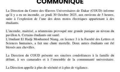 Ce matin, vers 6 heures, un grave incident a secoué l’Université Cheikh Anta Diop de Dakar, précisément au pavillon A. Selon les premières informations, l’incident...